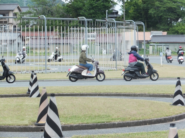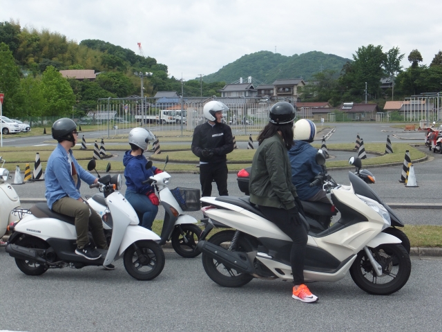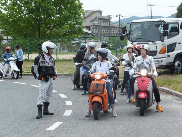 深夜の雨の心配をよそに、晴天に恵まれた中、尾道自動車学校で5月13日バイク講習会を受講しました。毎年、バイクで通学している学生を主な対象として、年1回講習を受けています。バイクの整備から始まり、乗り方や実際の注意事項などを教えていただきました。実技を中心とした内容で、学生も緊張していましたが、初心に返ることができとても有意義な時間でした。安全な運転を実践していきます。