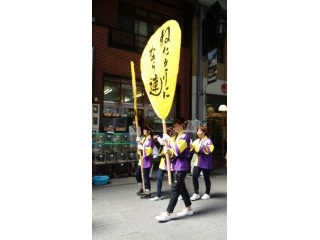 4月23日(日曜日) に開催された尾道みなと祭りに「尾道ねたきりになら連」の皆さんと一緒に2年生44名が参加しました。本通り商店街を元気なかけ声と踊り、利用者の方々の笑顔の中で学生達も盛り上がっていました。