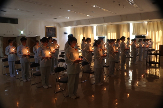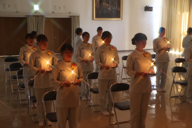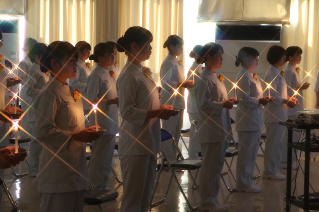 今回の宣誓式で、これから看護師になるんだと言う気持ちが一段と増した気がします。自分達がなりたい看護師像を忘れずに挑みたいと思います。