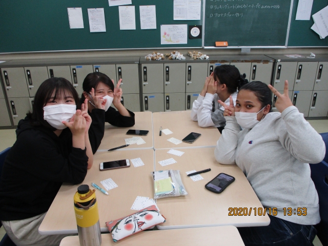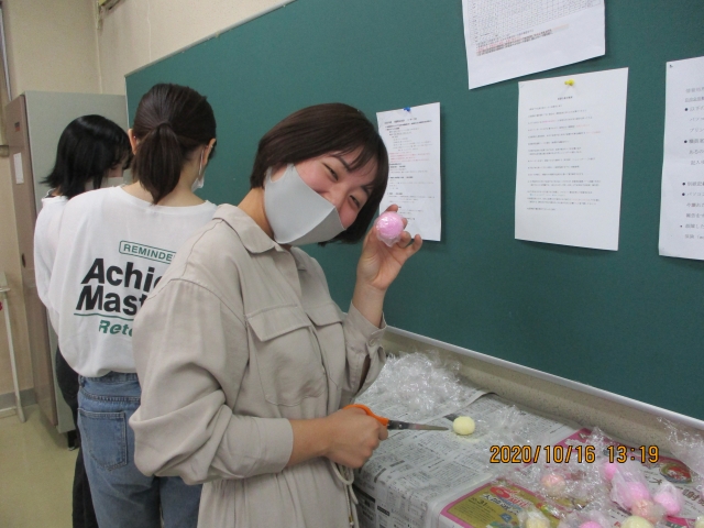 2020年の学校祭は新型コロナウイルスの感染拡大予防のため例年のように地域の方にも参加していただける形はとることができませんでした。しかし各学年からプロジェクトメンバーを選出し検討を重ね、withコロナ~今私たちにできること~をテーマに、1年生は手洗い動画の制作、2年生は実習でご指導いただいている病院施設への感謝の気持ちをメッセージカードと手作りバスボムに込めお渡しし、3年生はマスクケースをし製作し尾道市内の病院施設に配布をさせていただきました。4年生は1年生の協力のもと下級生に向け実習で役立つ図書の紹介を行いました。学校祭当日は時間を短縮し午前中のみでしたが、学年を超えた交流を感染対策を行ったうえで行うことができました。