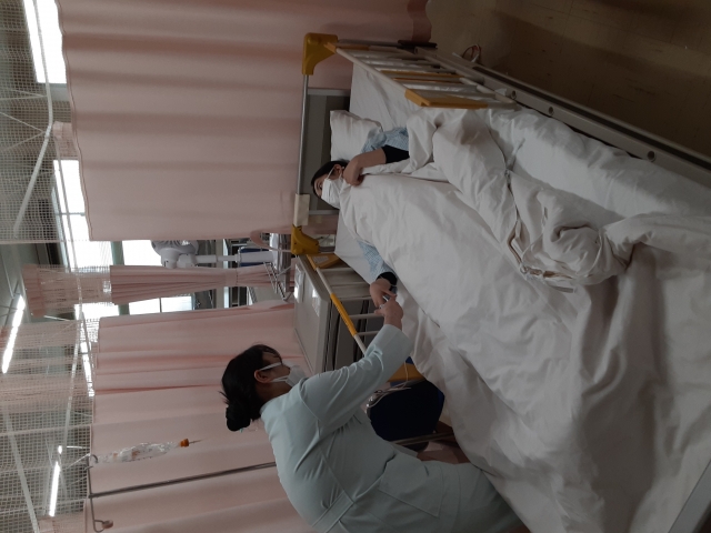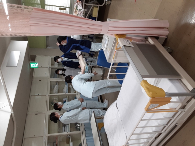 ニュース・お知らせ一覧へ戻る 日常生活援助実習 2022年01月27日(木) サムネイルをクリックすると拡大画像を表示 3年生の日常生活援助実習は、5日間の臨地実習を経て、工夫しながら学内実習を行いました。臨地で看護師さんと共に患者様への援助を経験させていただいたことで、改めて看護技術の大切さや奥深さを実感し、学内でも様々な状況を想定して、より良い援助を目指して頑張っています。