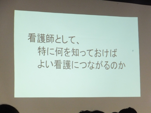 演題「看護はサイエンスによって支えられたア-トである」38年間の看護教員生活で、先生が感銘を受けられた日野原重明先生の言葉を紹介しながら、看護学生へのメッセ-ジを伝えてくださいました。「看護は常に人間が人間をみつめることから出発するものであり、みつめる人間がどのような人間であるかが問われるものである。」と述べられていました。学生達は真剣に先生の話を聞いていました。学生たちの心に刻まれ、知識、技術のみでなく人間力を高めていくことの大切さを実感したことと思います。