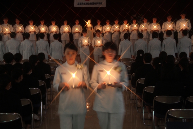 ニュース・お知らせ一覧へ戻る <2018年11月15日(木)>の新着情報 尾道市医師会看護専門学校 2018年11月15日(木) サムネイルをクリックすると拡大画像を表示 11月8日(木)13時より42期生35名の宣誓式が執り行われました。実行委員を中心に自分たちの手で式を作り上げていきました。当日はナイチンゲール誓詞を唱え、さらに自分たちの言葉でも宣誓を述べ、最後は歌で、自分たちの気持ちを表現しました。とても厳粛な中、ピアノ伴奏と共にナイチンゲールから看護の灯を受け継ぎました。学校長や同窓会長、在校生からお祝いの言葉をいただき、式終了後は、卒業生である上川亜矢様(社会医療法人里仁会 興生総合病院 緩和ケア認定看護師)より~緩和ケアを通して学んだ看護の力~ー患者・家族に寄り添うとはーと題して、貴重なお話を聞かせていただきました。看護の力の偉大さを改めて実感し、看護について考える機会を持ちました。皆様に感謝するとともに、患者様に安全で安楽なケアが実践できるように、努力をしていきます。