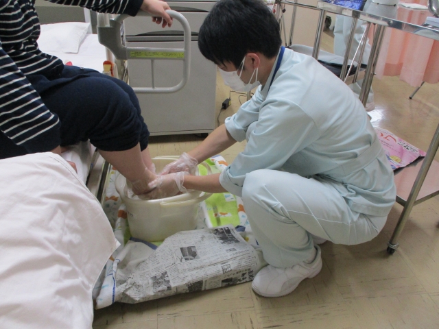 国家試験が無事終了した4年生は卒業に向け、これまで学んできたことの総まとめとして、事例をもとに自身の考える看護を計画し、看護技術発表会を行いました。教員が患者役となり、全身清拭・洗髪・足浴など個別性を考えた看護を実践しました。発表後はクラスメートや教員と活発なディカッションを行い、4月からのそれぞれの看護にさらに活かしていきます。